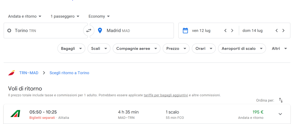Se tutte le certezze della vostra vita vengono meno, sposatevi con Google Flights. Su di lui potrete sempre contare. In tutta la mia carriera da viaggiatrice non ho mai visto motore di ricerca per voli aerei essere più preciso di Google Flights: riesce a rilevare in tempo reale qualsiasi variazione di prezzo, se la compagnia con cui intendete viaggiare ha la possibilità o meno di imbarcare il bagaglio a mano e se questo è da acquistare a parte. Riesce a rilevare addirittura se il prezzo è riferito al viaggio andata e ritorno oppure se quel prezzo è relativo ai biglietti separati. Per esperienza, ve ne prego, non fate come me e controllate sempre se è specificato questo dettaglio. Significa che otterrete quel prezzo solo se acquisterete l’andata e il ritorno in due transazioni separate.