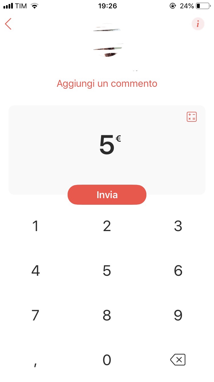 Dal menù “Contatti” l’app vi segnala tutti i contatti presenti nella vostra rubrica che hanno già scaricato Satispay e che lo utilizzano. Potete salvarli tra i vostri contatti preferiti cliccando sulla stellina, contrassegnandoli. Una volta selezionato il contatto, vi basterà digitare l’importo dovuto e inviare. In uno degli ultimi aggiornamenti è stata inserita l’opzione calcolatrice, con la quale potrete calcolare prima dell’invio l’importo che dovete al destinatario.